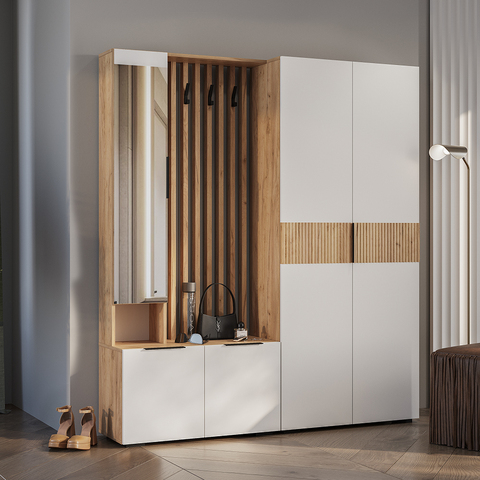 Прихожая "Сандра" от БТС Мебель - это комплект мебели, который поможет вам организовать пространство в коридоре. В комплект входят зеркало, вешалка, обувница и шкаф-пенал.