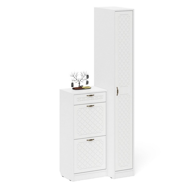 Прихожая П-6 Компоновка № 42, цвет белая шагрень/фасады МДФ белое дерево фрезеровка ромб
