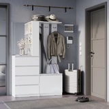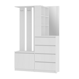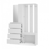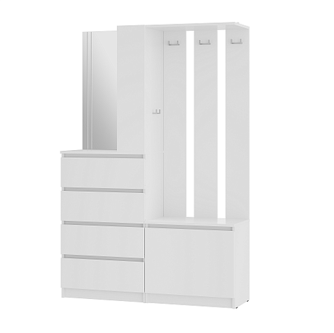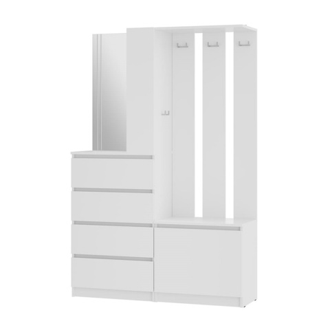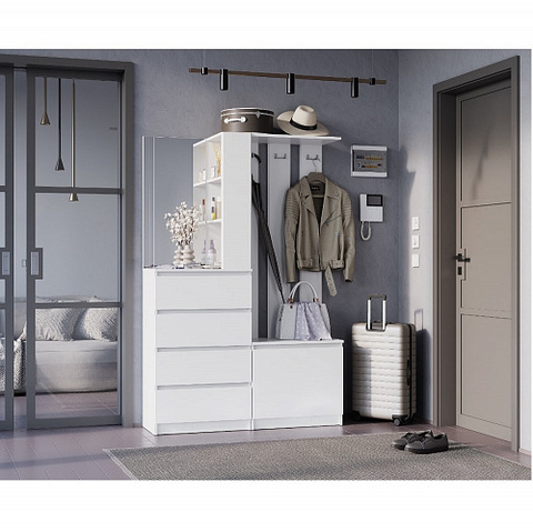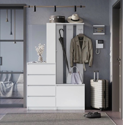 В комплект входят вешалка, комод, полка, обувница и зеркало. Это позволяет использовать мебель не только для хранения одежды и обуви, но и для размещения различных аксессуаров и предметов.