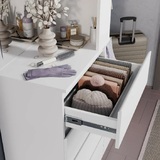 Мебель выполнена в белом цвете, что позволяет ей гармонично вписаться в любой интерьер. Материал корпуса и фасада - ЛДСП, что обеспечивает прочность и долговечность мебели.