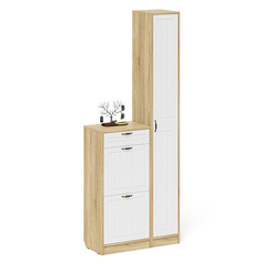Прихожая П-6 Компоновка № 21, цвет дуб сонома/фасады МДФ белое дерево фрезеровка ромб