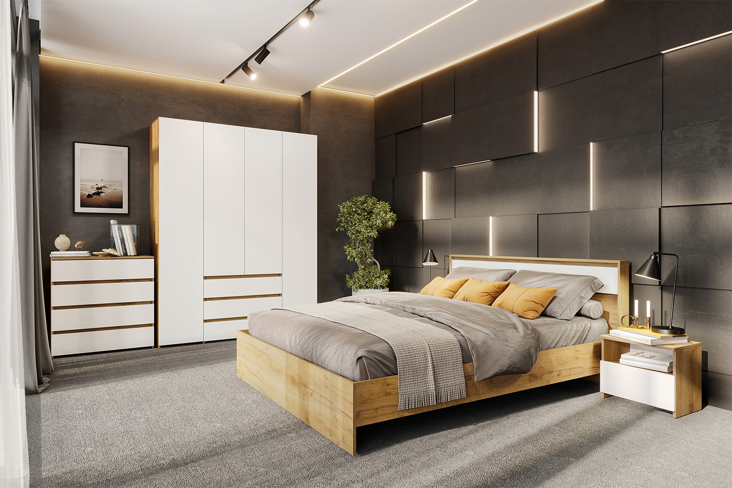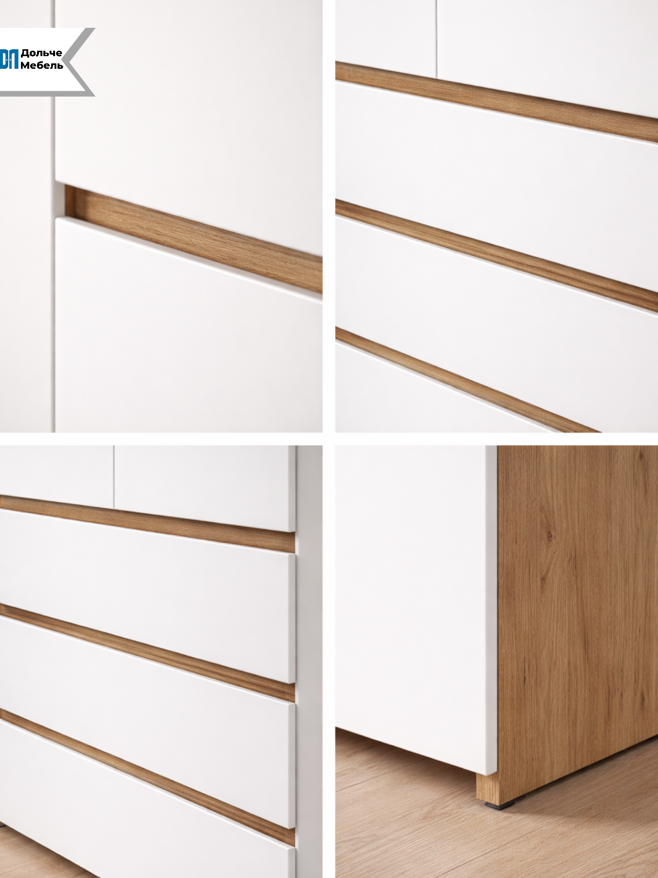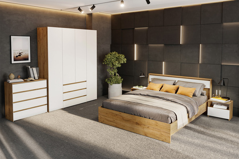 Современное сочетание цветов дуб золотой и белый выглядит стильно и универсально, добавляет интерьеру тепла и визуальной лёгкости. Лаконичный дизайн без лишнего декора легко вписывается в современные и скандинавские интерьеры.