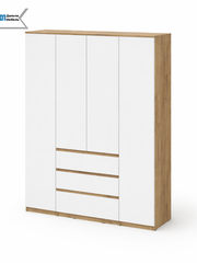 Шкаф распашной 4-дверный 160×46×205 см, вместительный для одежды и белья, Арника Денвер, дуб золотой/белый, с ящиками