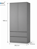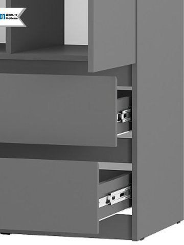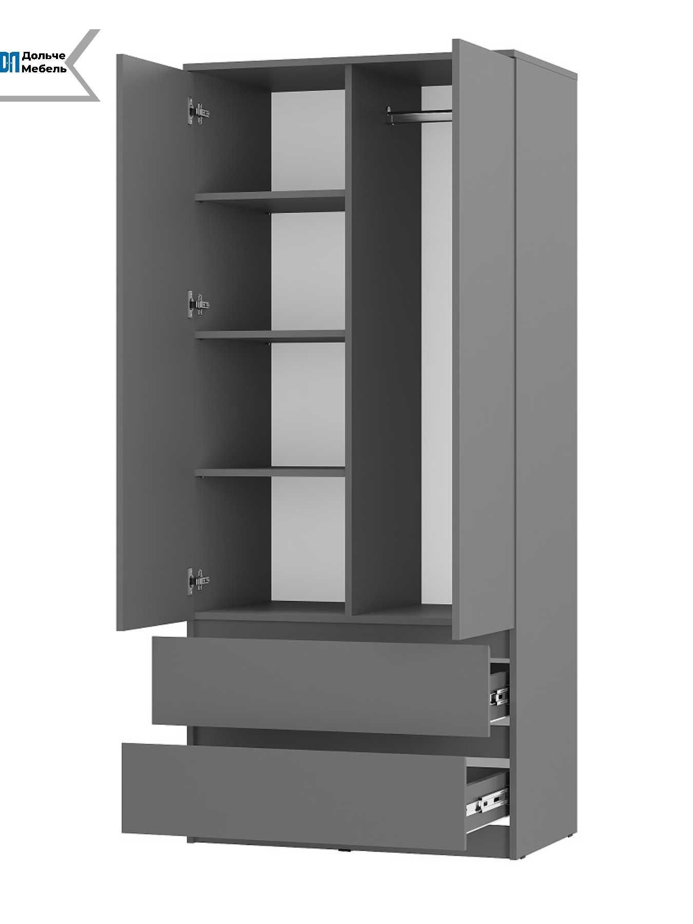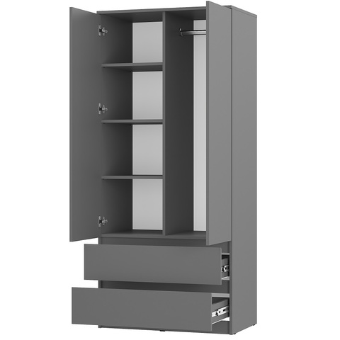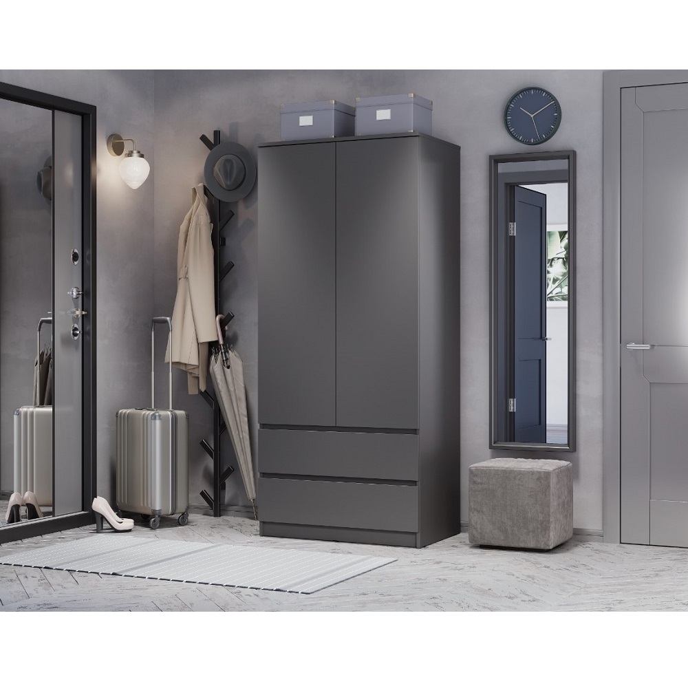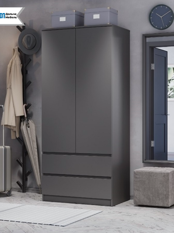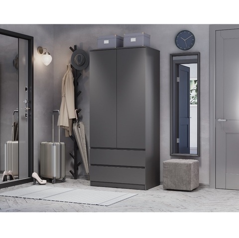 Двухстворчатая конструкция обеспечивает быстрый доступ к вещам, а матовое покрытие цвета графит смотрится аккуратно и современно.