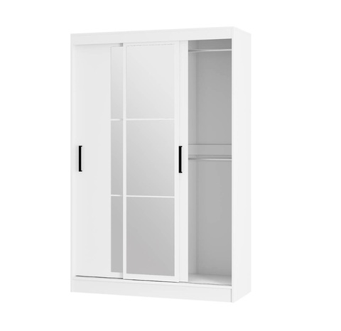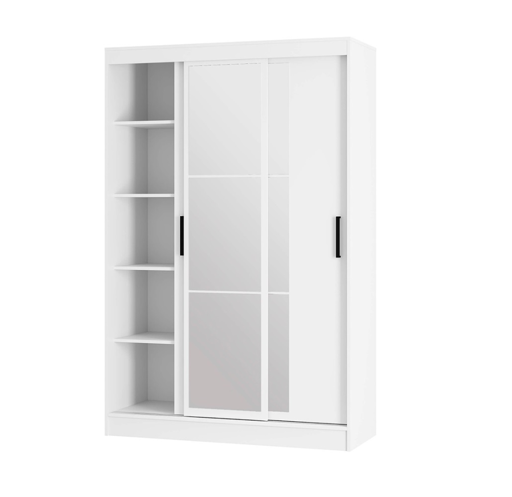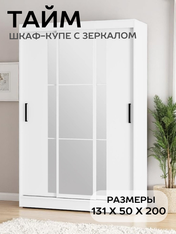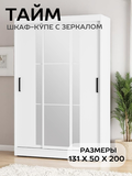 Шкаф-купе для одежды с зеркалом Тайм ШКК-03, 131 см, белый, в спальню