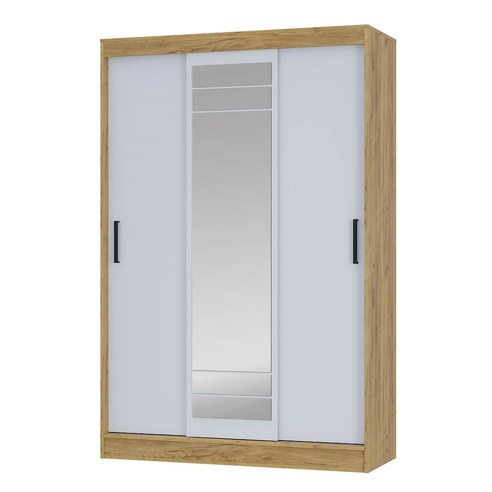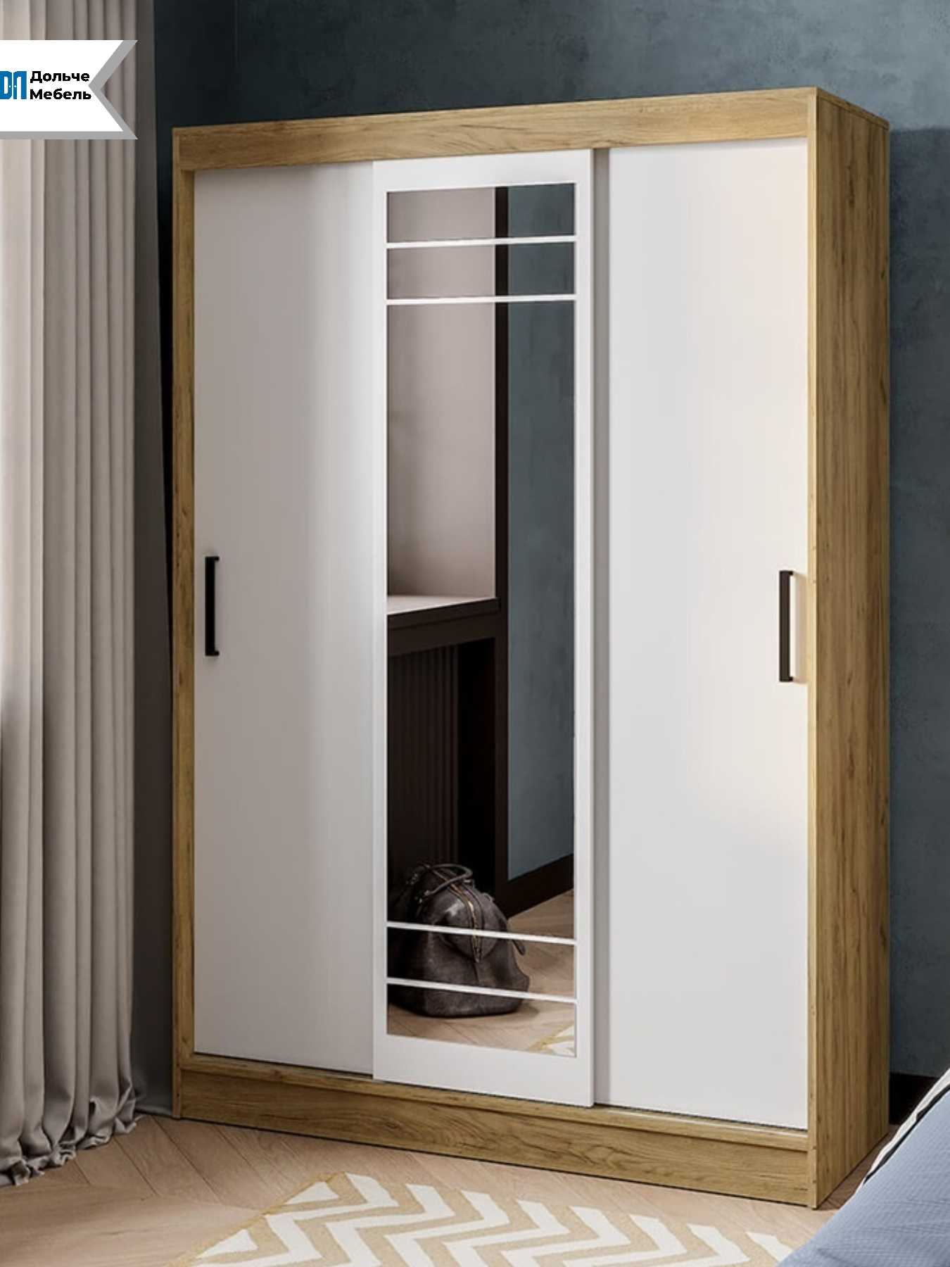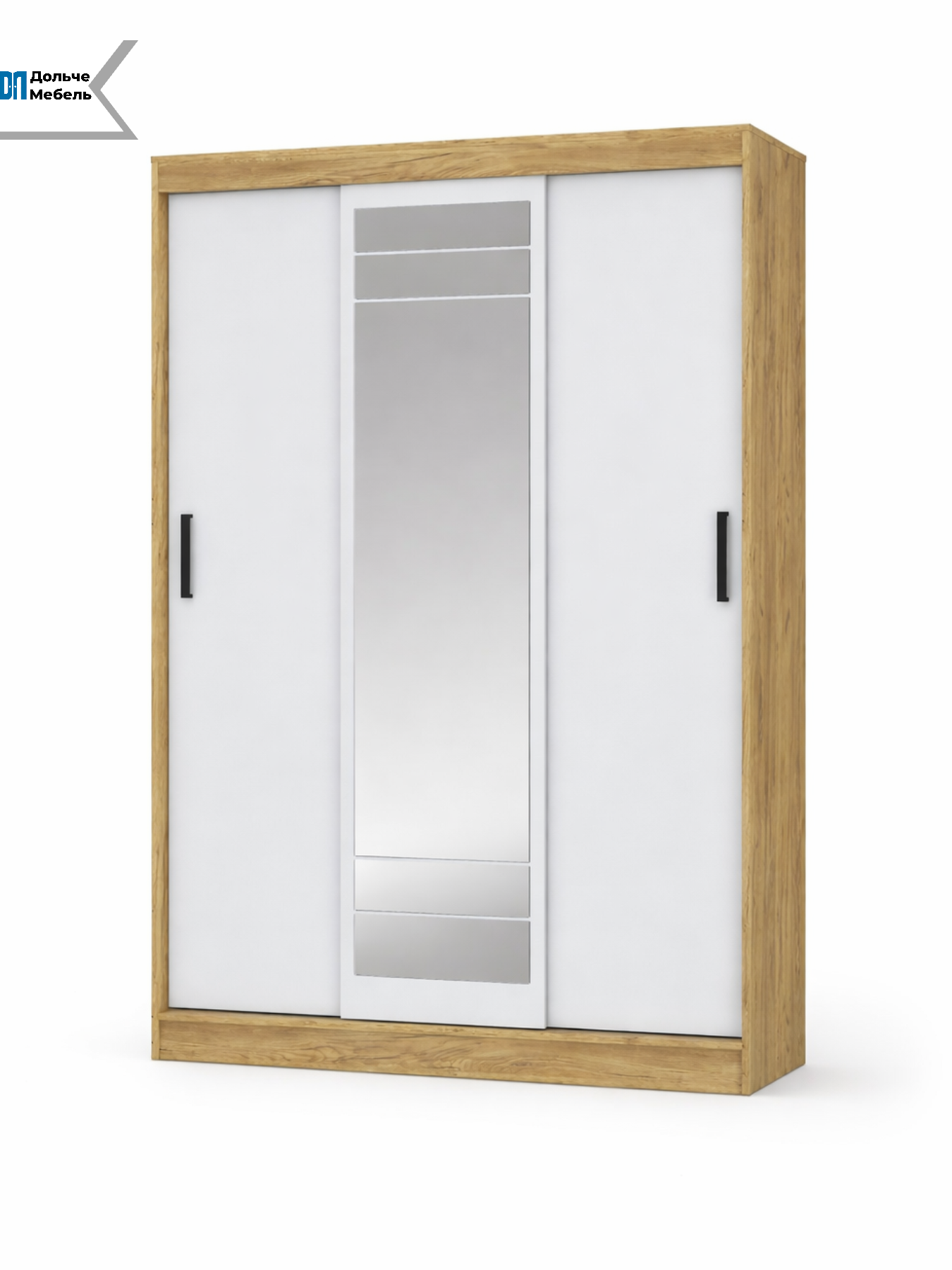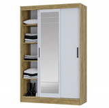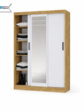 Модель оснащена раздвижными дверями, одна из которых выполнена с зеркалом во весь рост — это удобно для ежедневного использования и визуально увеличивает пространство. Внутреннее наполнение обеспечивает удобную организацию хранения одежды и аксессуаров.