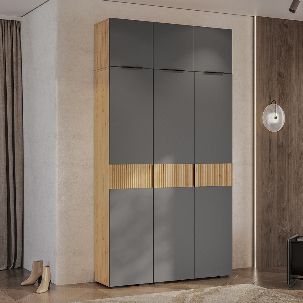 Шкаф навесной "Сандра" ШКН-03 может использоваться как самостоятельная модель, так и как надстройка для шкафа ШК-04 и пенала ПН-01, либо прихожей ПР-03 и пенала ПН-01.