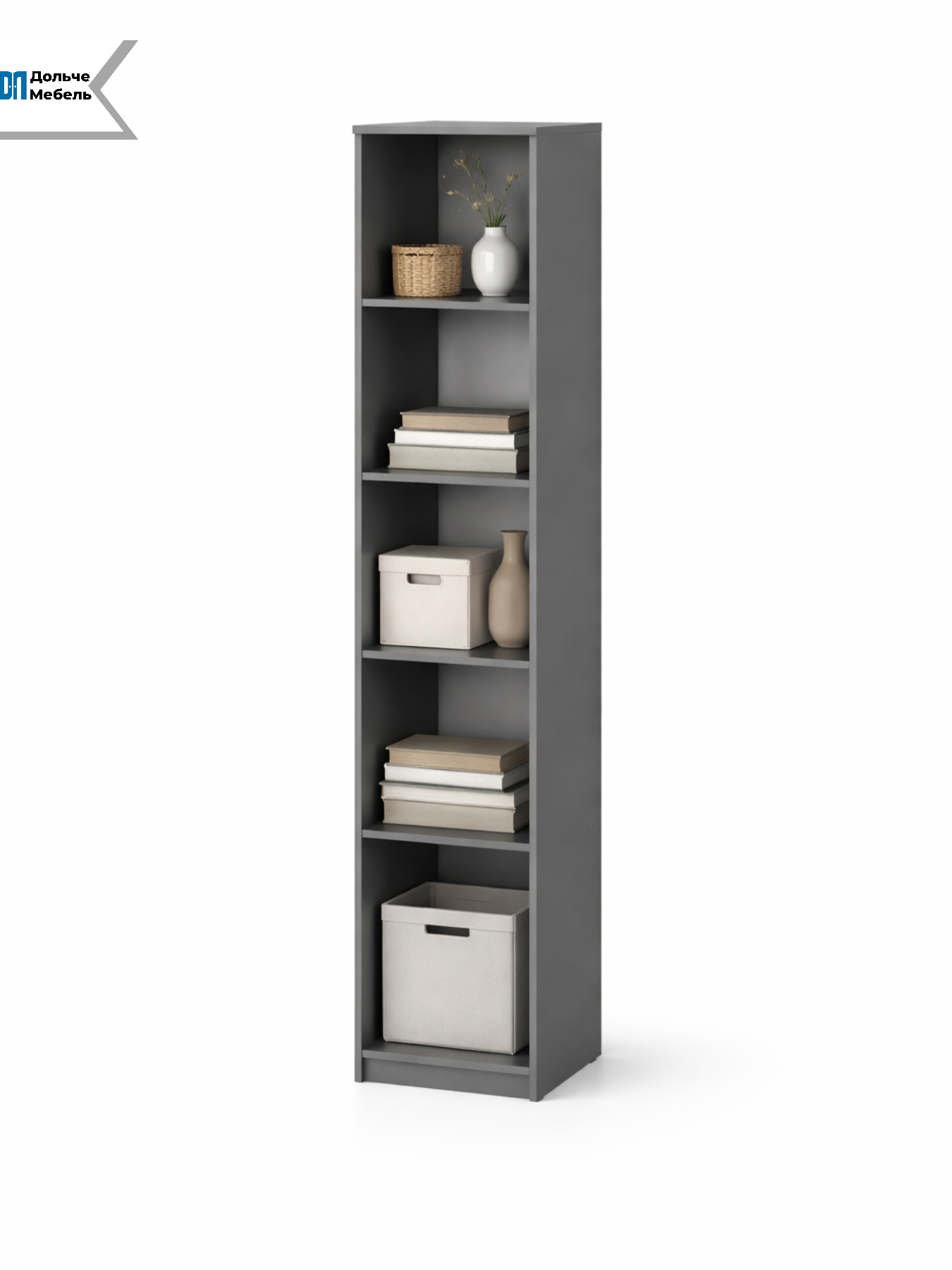 Модель оснащена полками по всей высоте, что позволяет удобно организовать хранение вещей и поддерживать порядок. Вертикальный формат эффективно использует высоту помещения, обеспечивая вместительность при минимальной занимаемой площади.