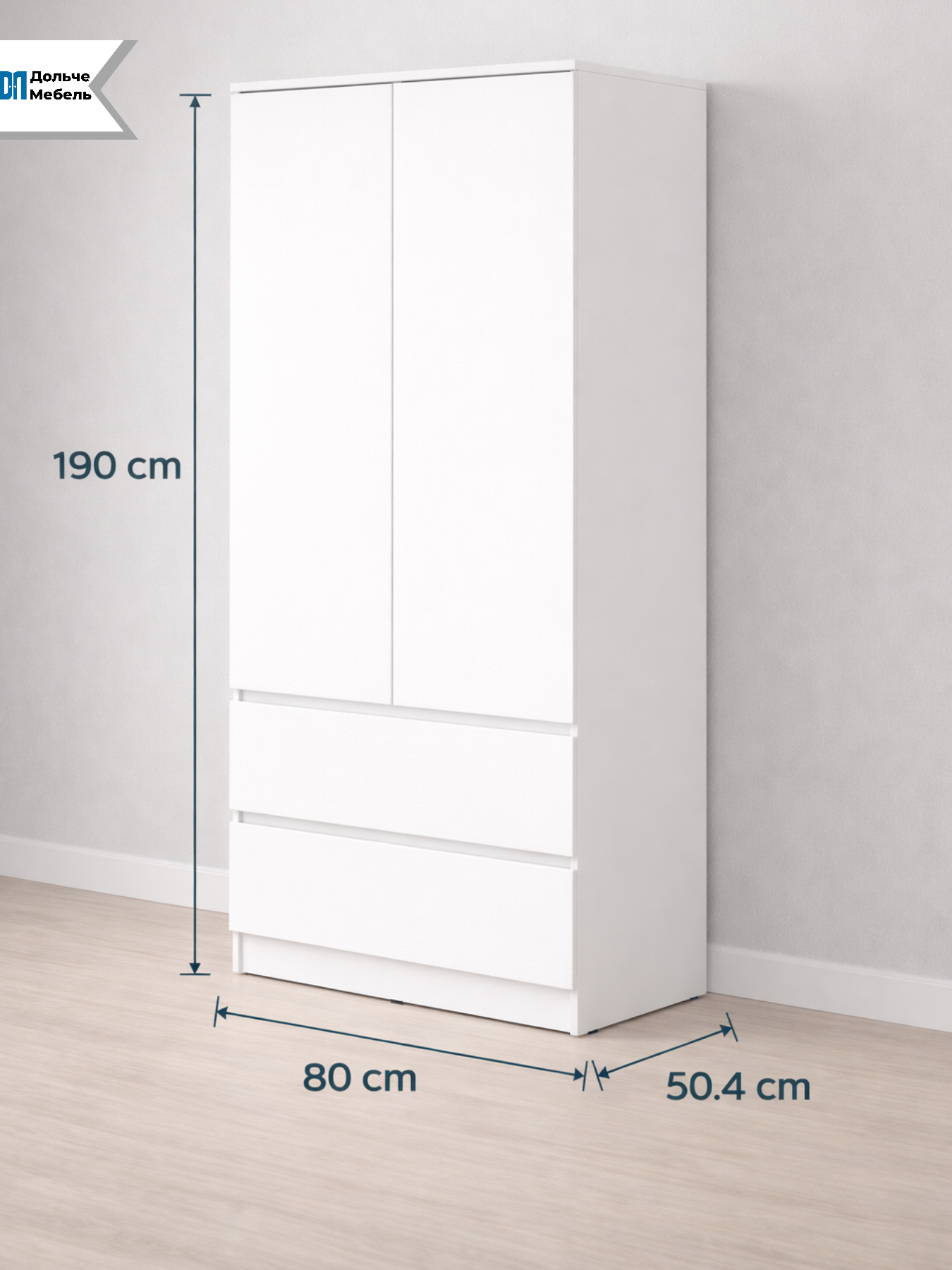Шкаф имеет размеры 190х80,2х51,4 см, что позволяет разместить его даже в небольших помещениях.
