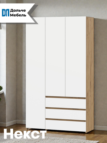 Шкаф распашной трехстворчатый для одежды SV-Мебель Некст 1 представляет собой стильное и функциональное решение в спальню. Элегантный дизайн и современная отделка в цвете дуб золотой и белый создают атмосферу свежести и простора.