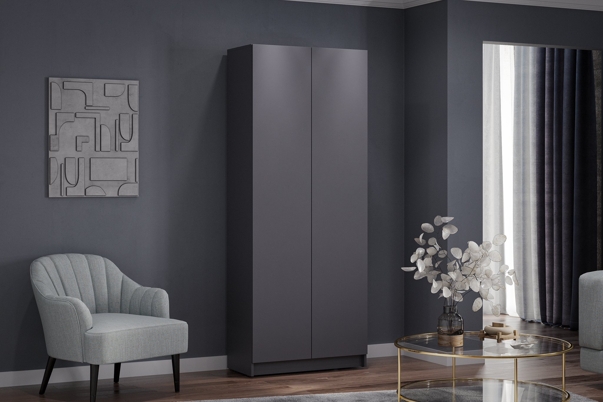 Цвет графит серый подчёркивает современный стиль интерьера, легко сочетается с другой мебелью и не перегружает пространство визуально.