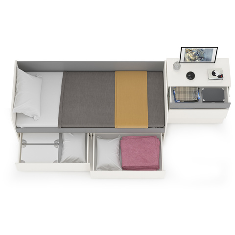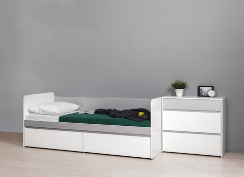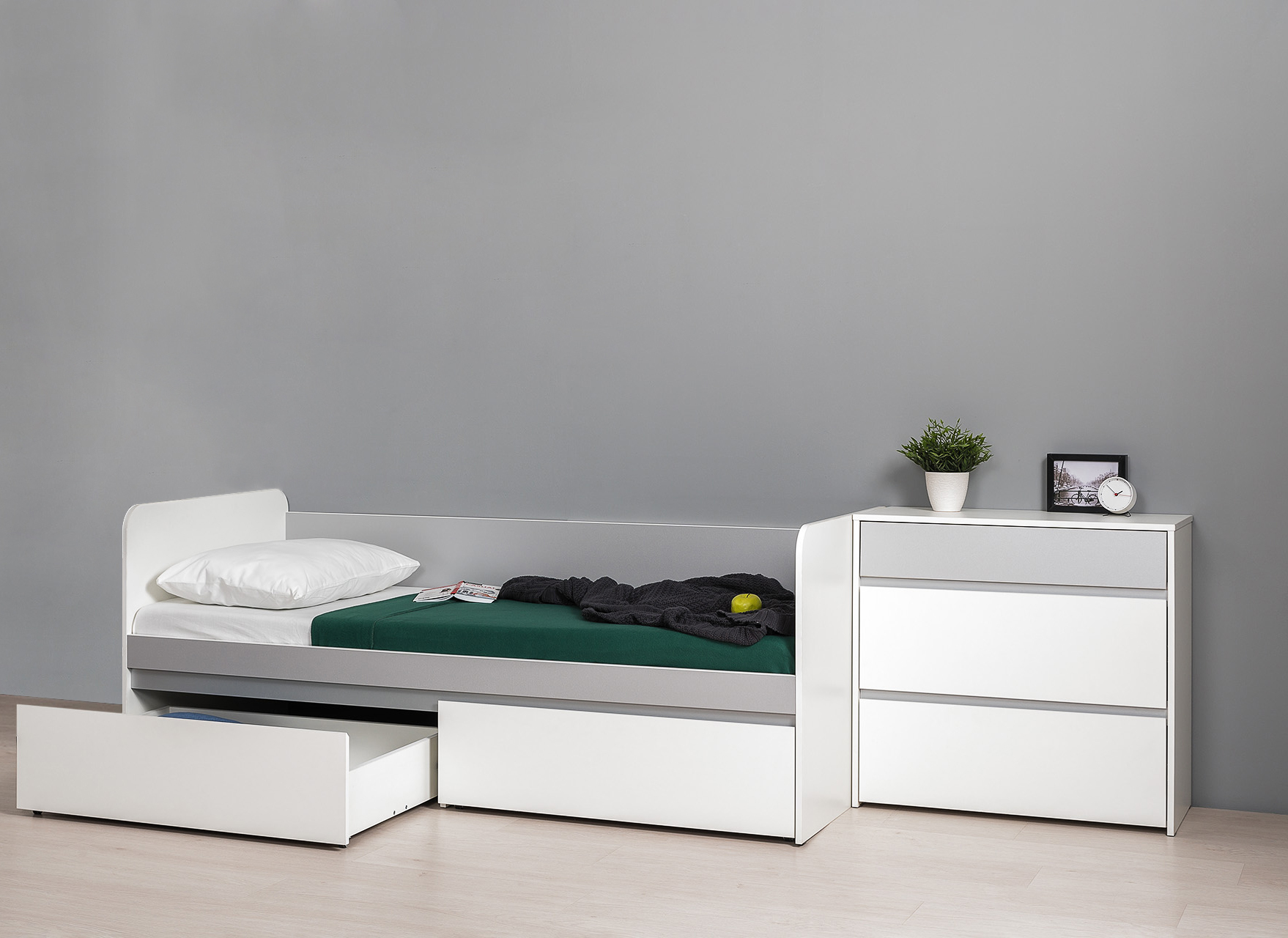 Кровать Торонто 11.39 + Комод 13.321, цвет белый шагрень/стальной серый