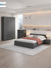 Спальный гарнитур Арника Денвер, кровать 160×200 см, комплект мебели в спальню с шкафом, комодом и тумбами, цвет графит