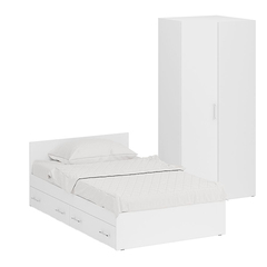 Кровать с ящиками 1200 + Шкаф 2-х створчатый Стандарт, цвет белый