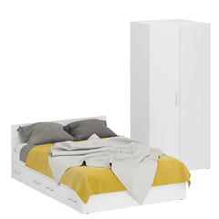Кровать с ящиками 1400 + Шкаф угловой Стандарт, цвет белый