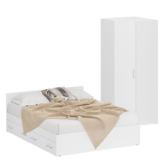 Кровать с ящиками 1600 + Шкаф 2-х створчатый Стандарт, цвет белый