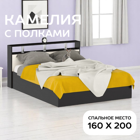 Двуспальная кровать СВК Камелия 160×200 см — удобная и функциональная модель для обустройства спальни в современном или классическом интерьере.