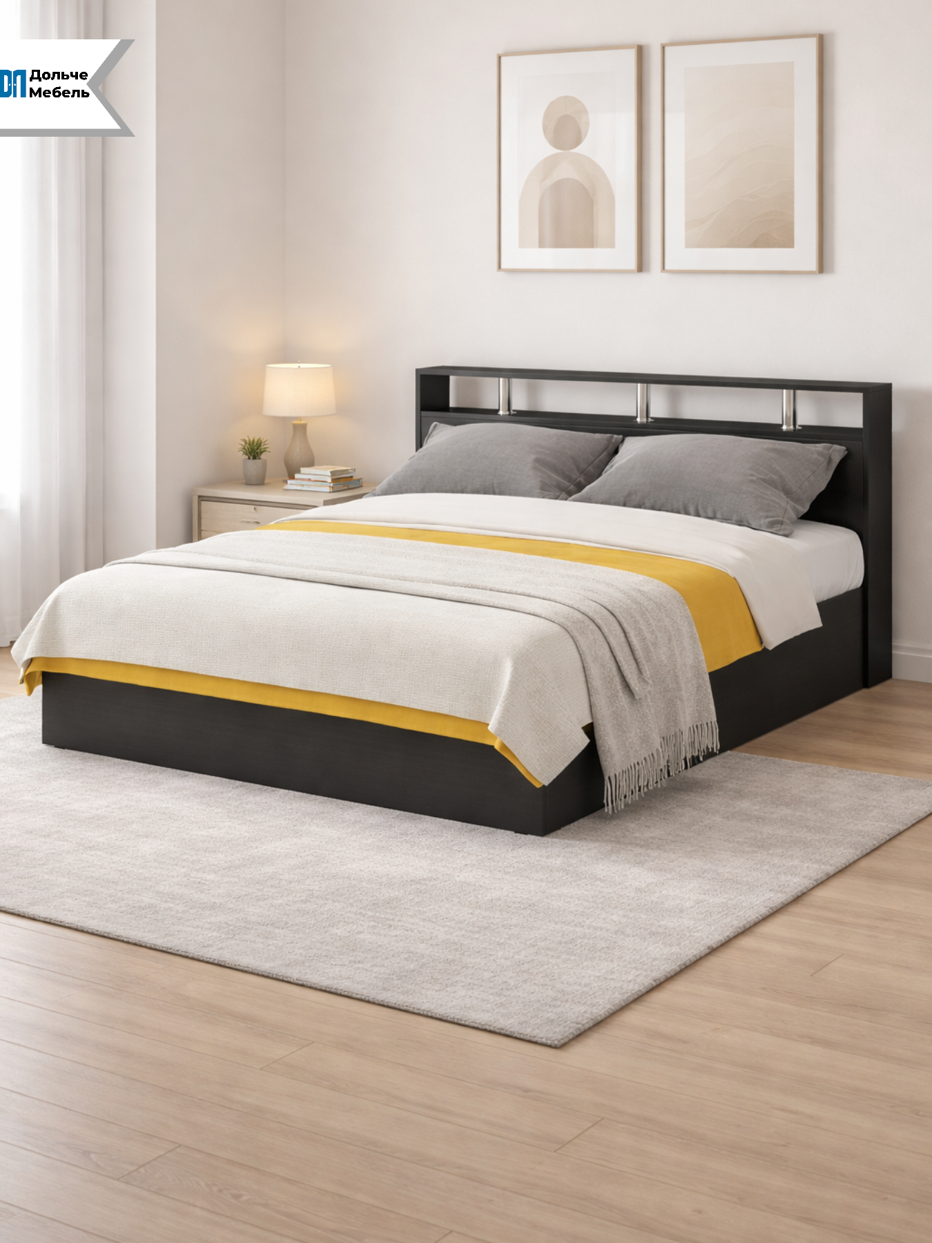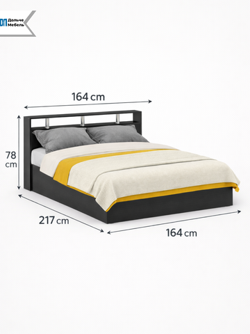 Кровать рассчитана на стандартный матрас 160×200 см и обеспечивает комфортное спальное место для двоих. Изголовье придаёт конструкции завершённый вид и повышает удобство при использовании.