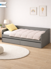 Комод оснащен пятью ящиками, что обеспечивает достаточное пространство для хранения одежды, белья и других вещей. Ящики выдвигаются легко и плавно благодаря шариковым направляющим.