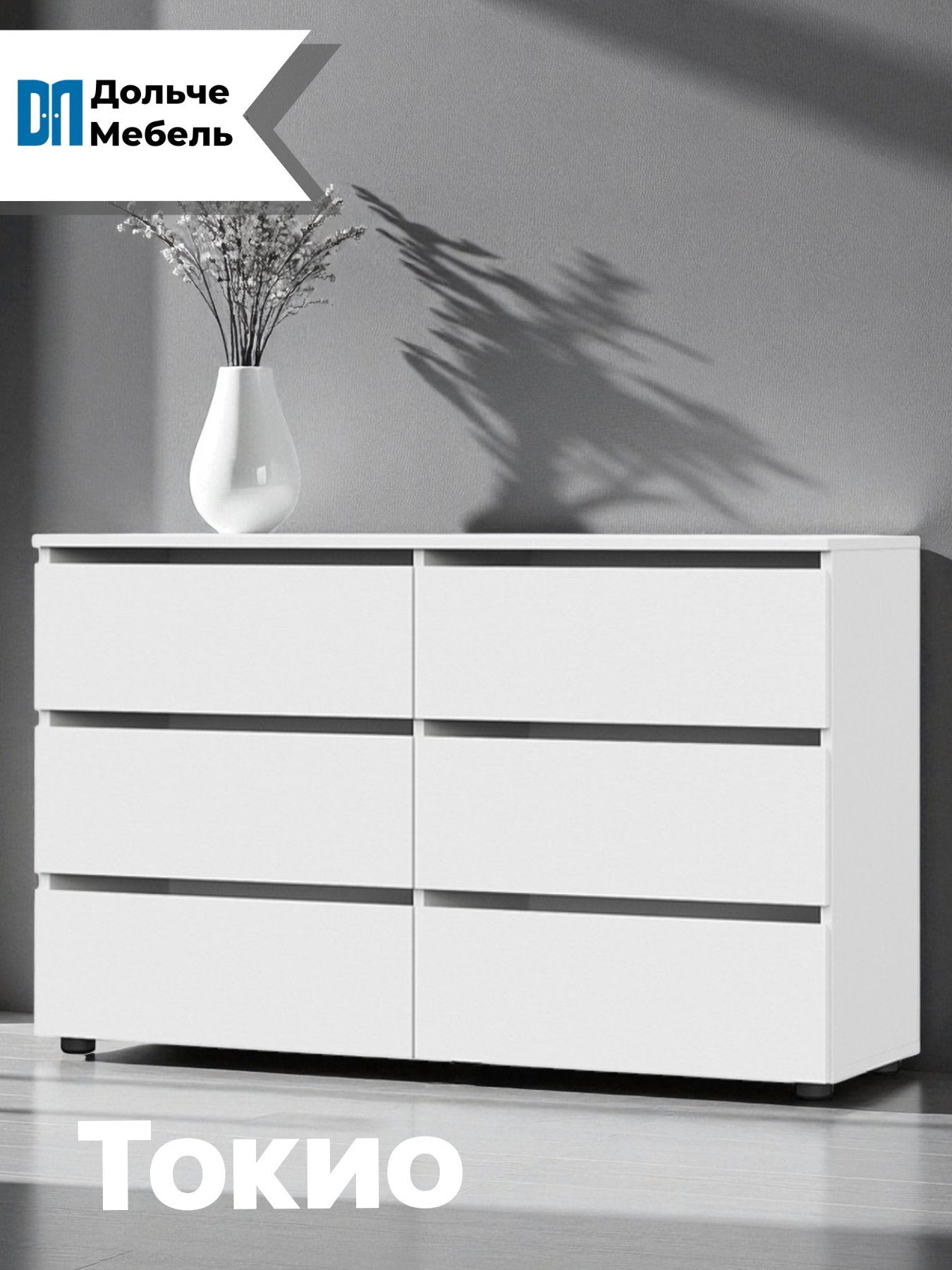 Комод для одежды большой SV-Мебель Токио выполнен в современном стиле и станет отличным дополнением для любого интерьера. Белый цвет комода придаст комнате свежести и легкости, а его размеры (ширина 120.1 см, глубина 36.8 см, высота 73.9 см) позволят разместить на нем большое количество вещей.