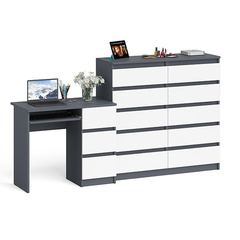 Стол компьютерный Мори МС-6 правый + Комод МК1200.10, цвет графит/белый