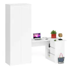 Стол компьютерный Мори МС-16 правый + Шкаф МШ900.1 + Антресоль МА900.1, цвет белый
