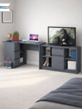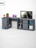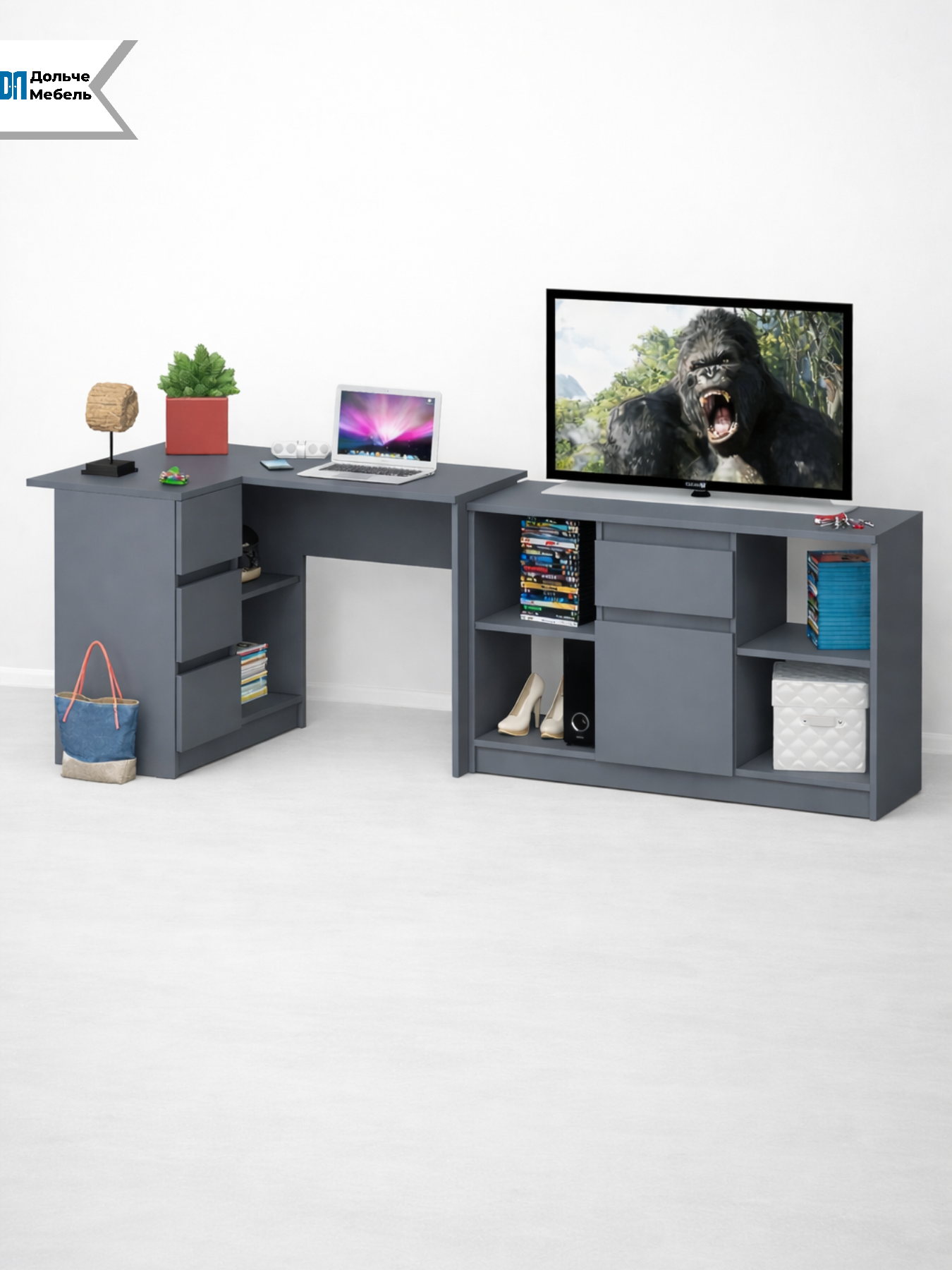 Стол сочетает рабочую зону под монитор или ноутбук и встроенную тумбу для хранения, что позволяет рационально использовать пространство.