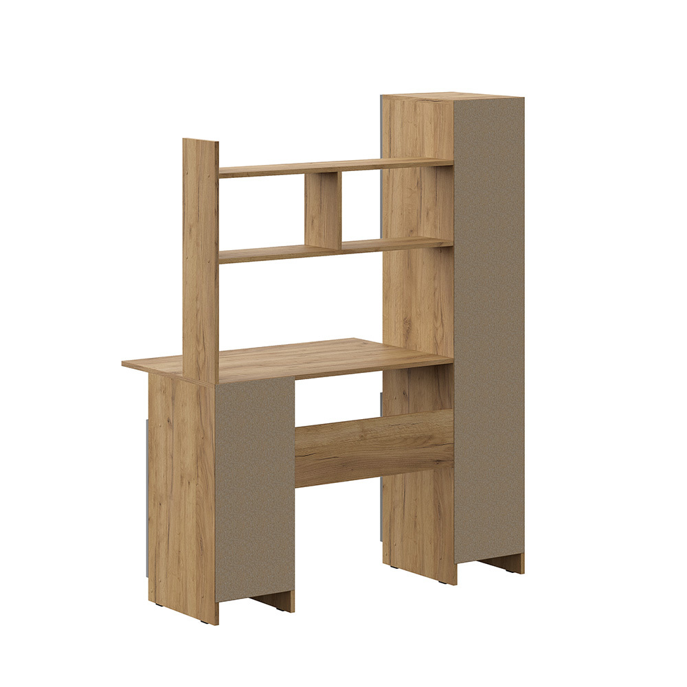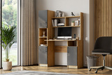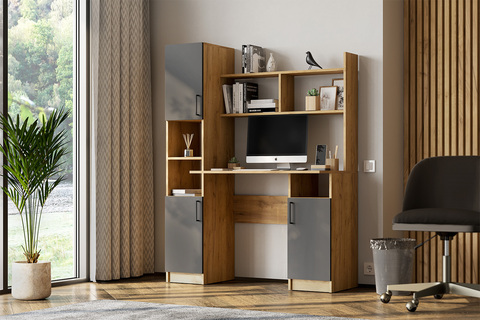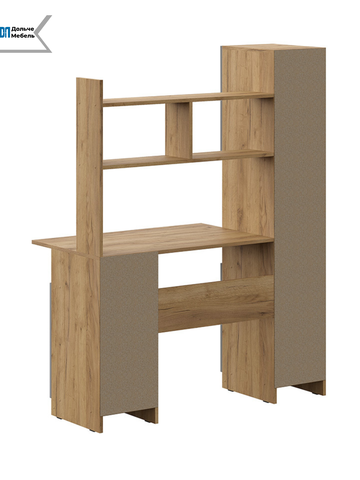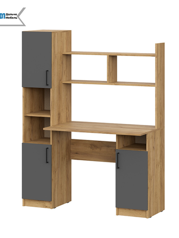Рабочая поверхность обеспечивает комфортное размещение ноутбука или монитора, а надстройка с открытыми полками позволяет удобно хранить книги, учебники и аксессуары. Закрытые шкафчики подходят для документов, канцелярии и личных вещей, помогая поддерживать порядок.