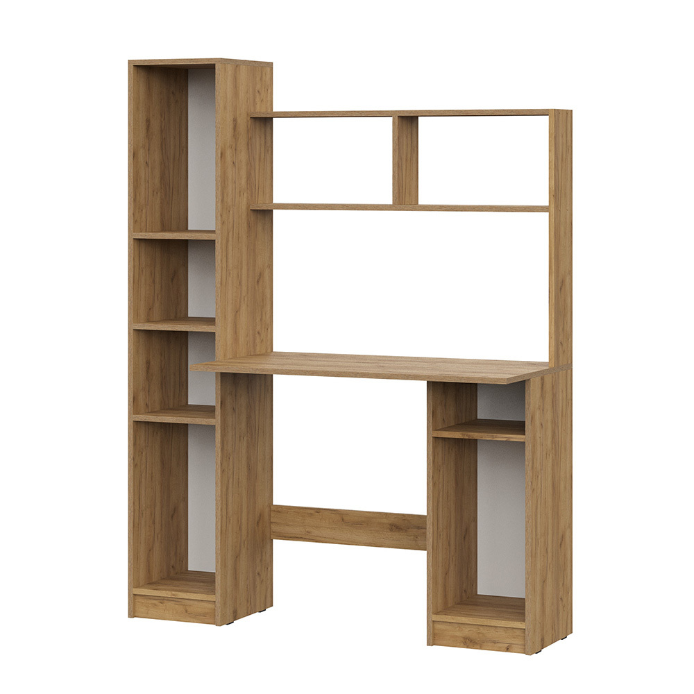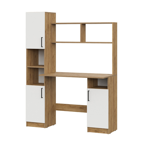 Ширина 120 см обеспечивает комфортную рабочую зону для ноутбука или монитора, а надстройка с открытыми полками и закрытыми шкафчиками позволяет удобно хранить книги, документы, учебные материалы и аксессуары.