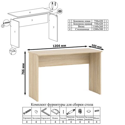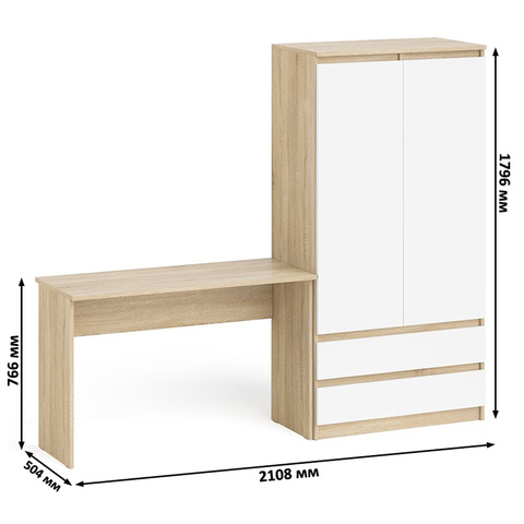 Стол письменный Мори МСП1200.1 + Шкаф МШ900.1, цвет дуб сонома/белый