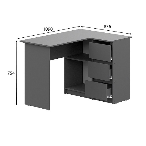 Стол оснащён вместительными выдвижными ящиками и открытой нишей, что удобно для хранения документов, канцелярии и учебных принадлежностей. Рабочая поверхность шириной 109 см обеспечивает комфортное размещение ноутбука, монитора и аксессуаров.