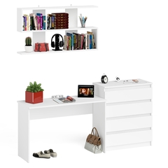 Стол письменный Мори МСП1200.1 + Комод МК800.4 + Полка 1200, цвет белый