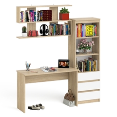 Стол письменный Мори МСП1200.1 + Стеллаж МСТ600.3 + Полка 1200, цвет дуб сонома/белый