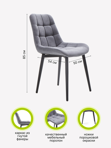 Стул кухонный Румба мягкий на металлических ножках, цвет серый, ножки черные