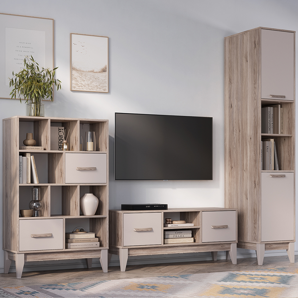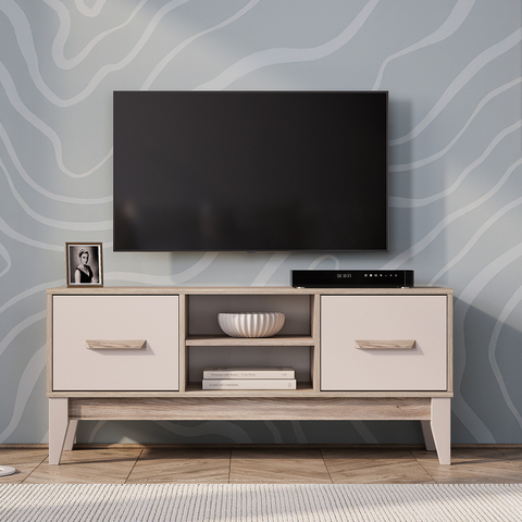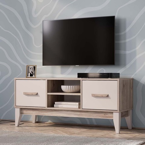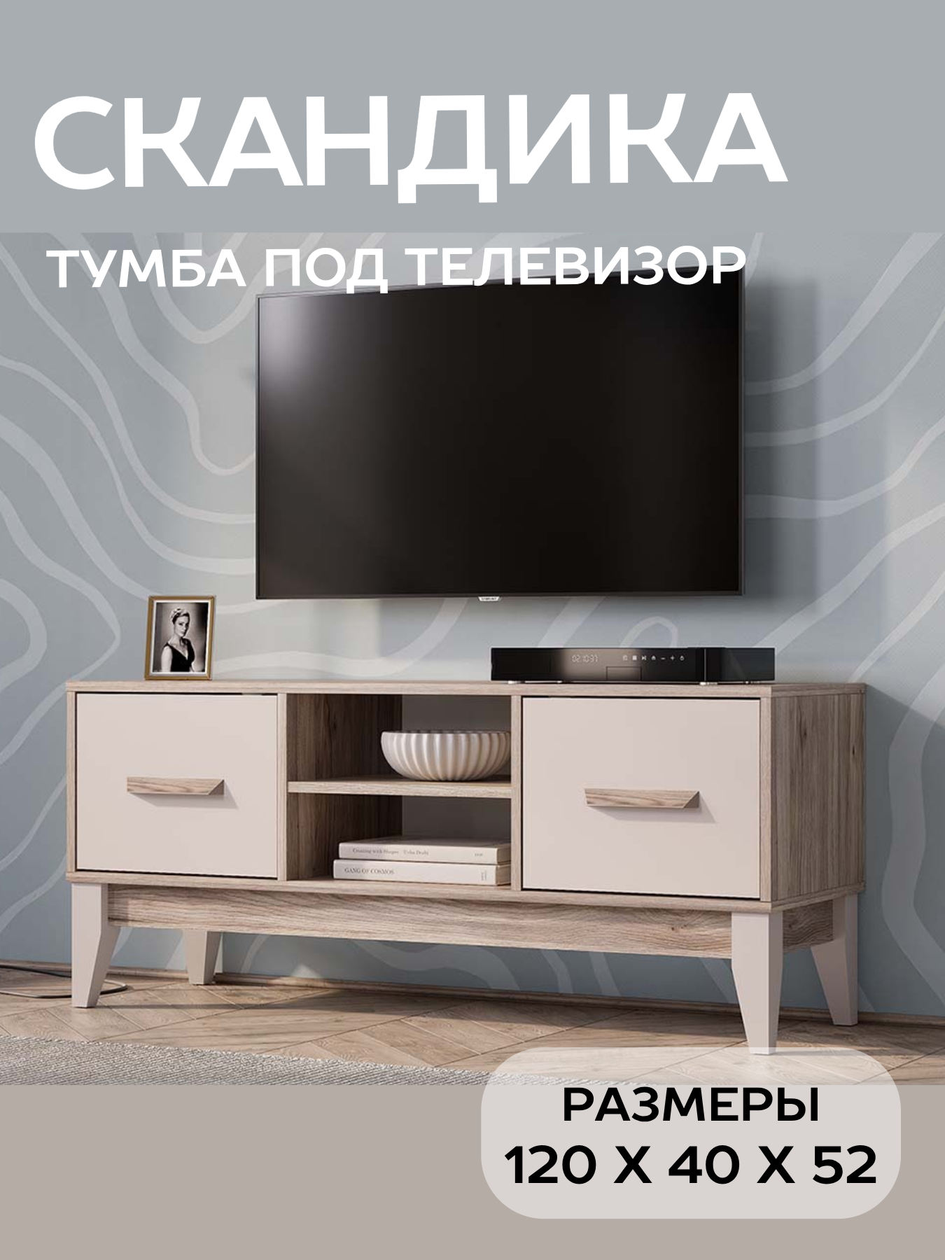 Многофункциональная тумба под ТВ «Скандика» — универсальная модель для современной гостиной, которую отличает минималистичный дизайн и оптимальное сочетание открытых и закрытых зон хранения. Две вместительных полки за дверцами и две открытых полки позволят разместить всю нужную технику.
